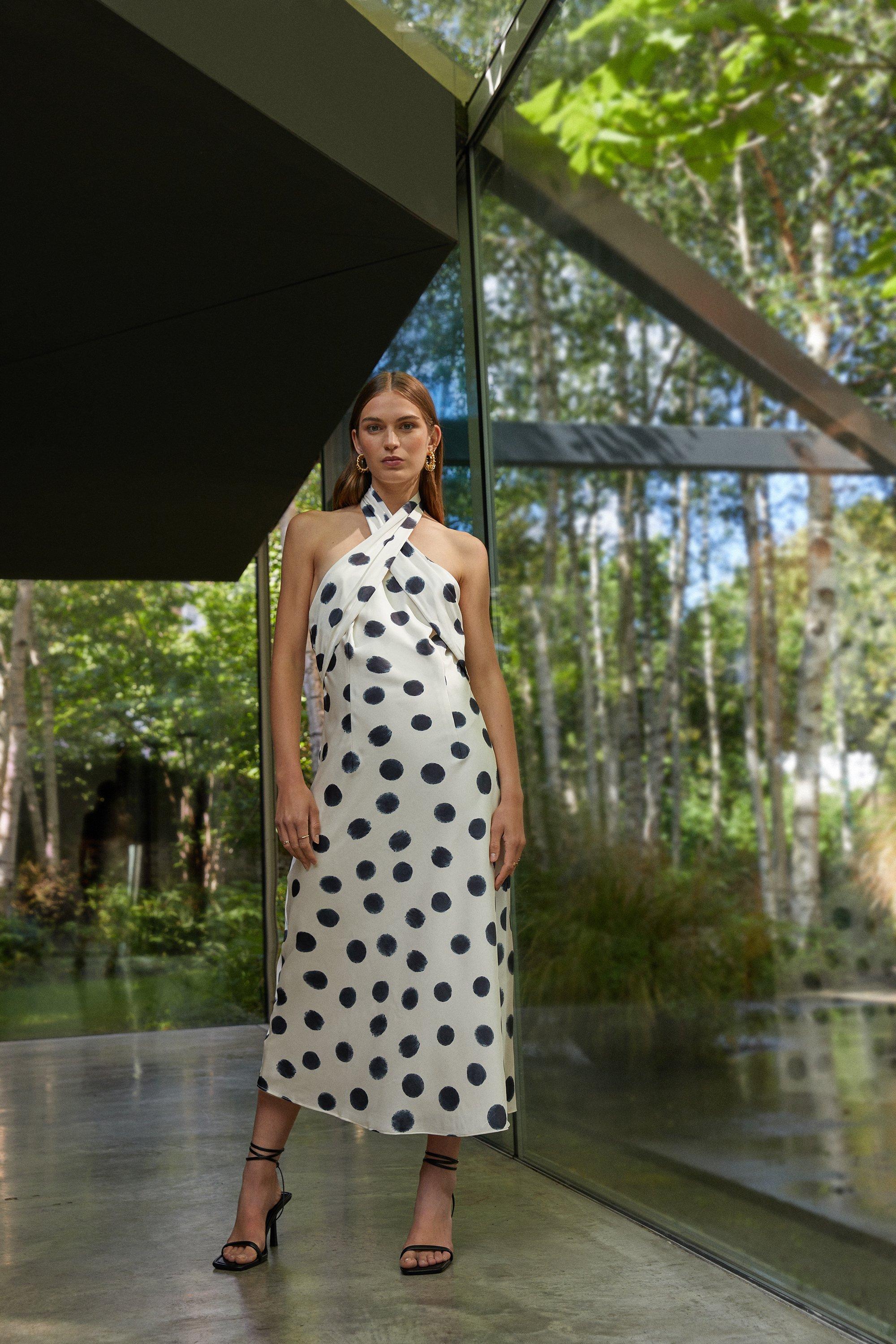 Oasis spot cowl clearance neck midi dress